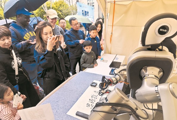 具身智能机器人正在进行写毛笔字演示 本报记者 陶磊 摄